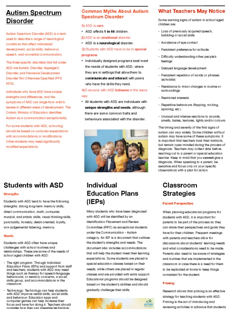 *autism is considered to be on a spectrum. Autism spectrum disorder (asd) refers to a group of complex neurodevelopment disorders characterized by repetitive and characteristic patterns of behavior and difficulties with social communication and interaction. Teachers, paraprofessionals, and parents who work with children with autism need to be prepared with a toolbox of strategies and techniques to not only make their lives easier … Working with children with autism can be challenging and also quite rewarding. Flow, creativity and autism spectrum disorder 2 abstract this literature review is an analysis of the literature exploring the use of expressive arts modalities with children living with autism spectrum disorder (asd) , with a focus on emotional regulation and behavior modification.